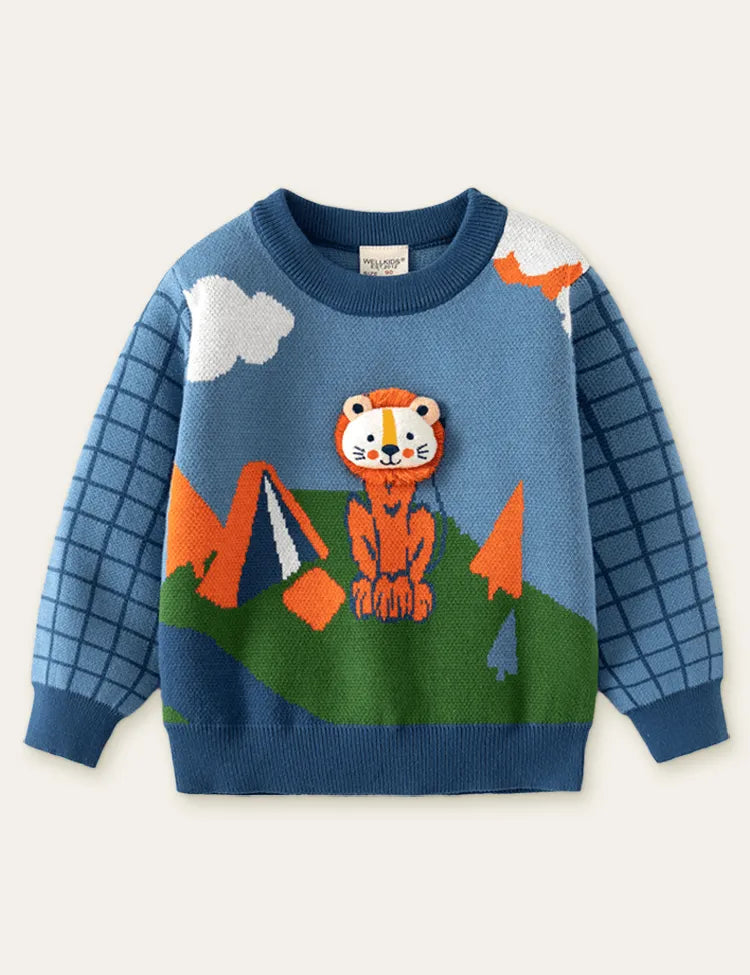 سترة بأكمام طويلة مزينة بالأسد