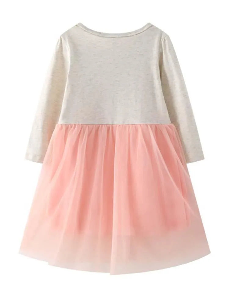 فستان طويل الأكمام من الشاش والترتر بألوان قوس قزح