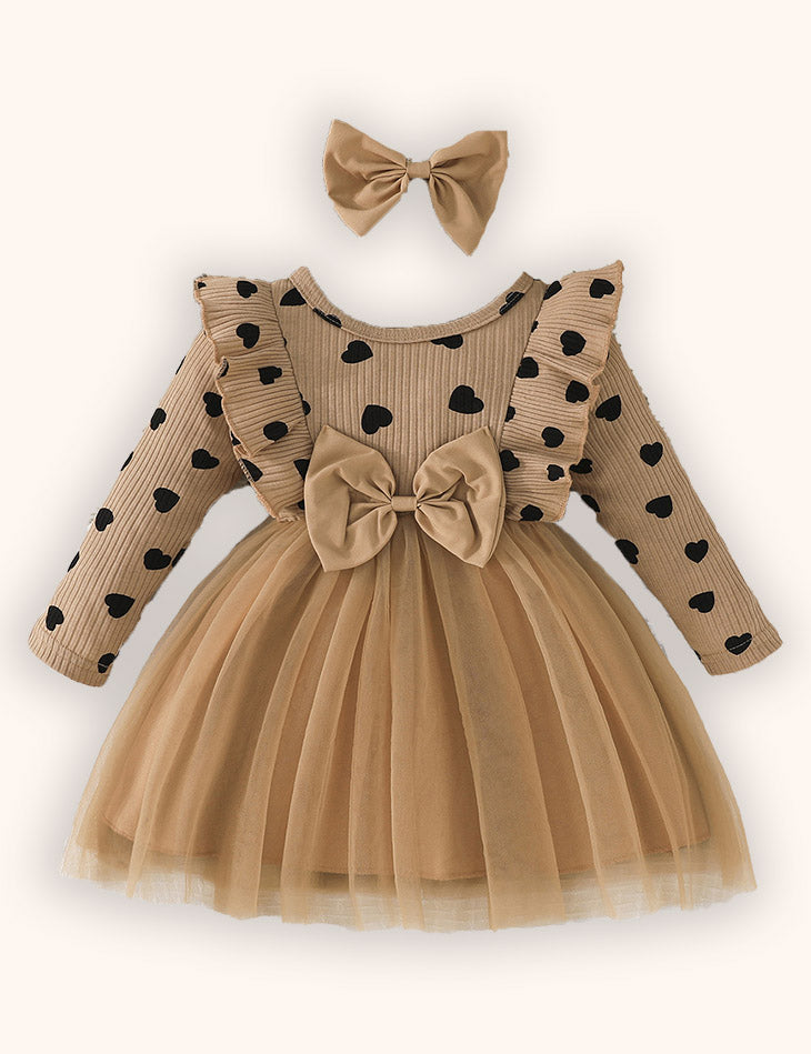 Abito in tulle con giunture con stampa d'amore per San Valentino
