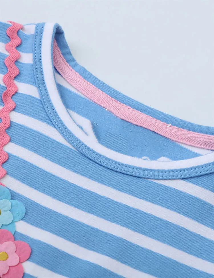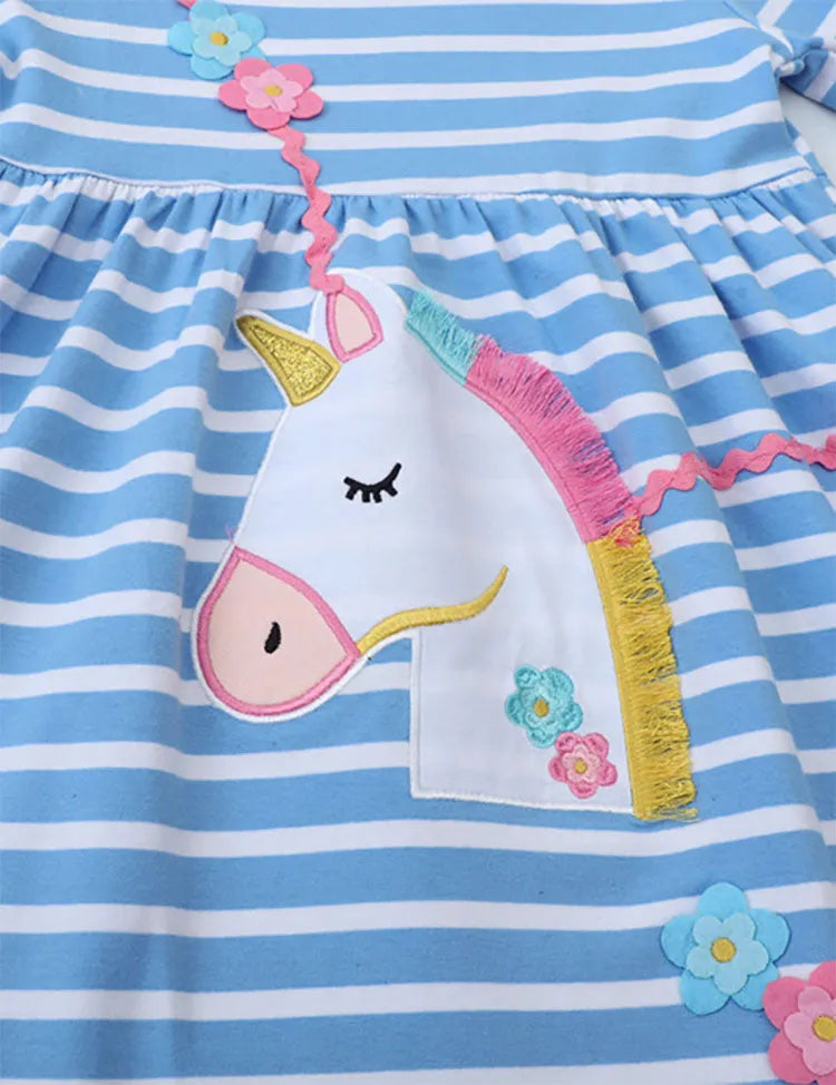 Unicorn Flower Applique Long-sleeved Cotton Dress