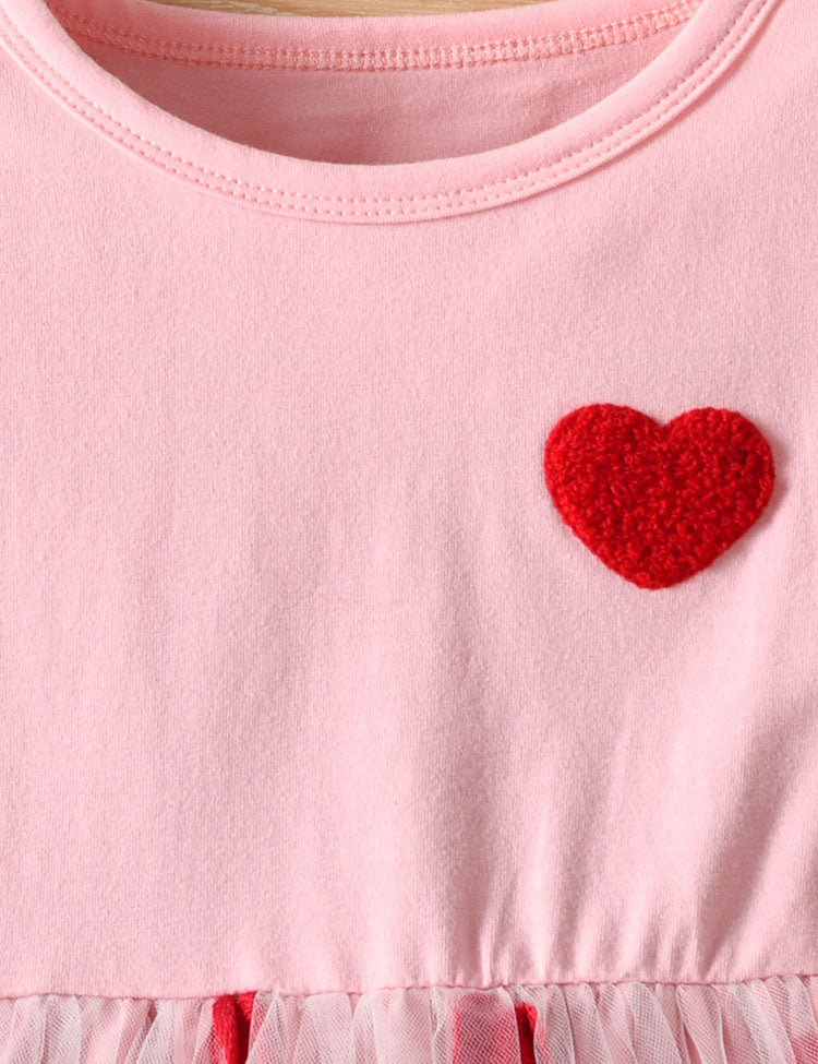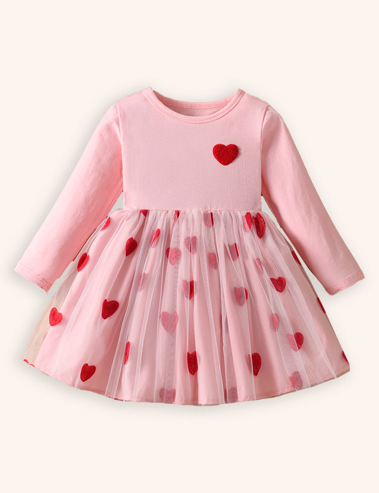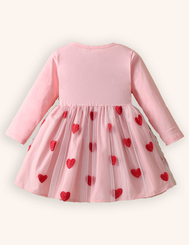Love Embroidery Tulle Long Sleeve Princess Dress