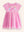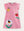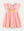 Koraalroze jurk met giraffe-applicatie en knopen aan de voorkant