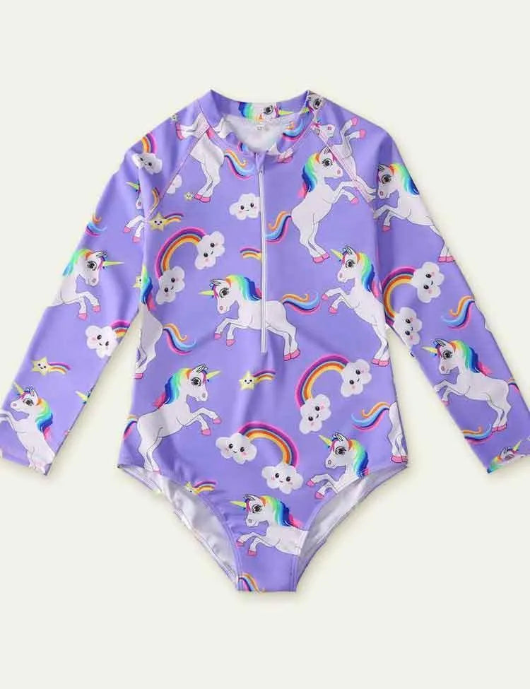Unicorn Printed Long Sleeve Swimsuit