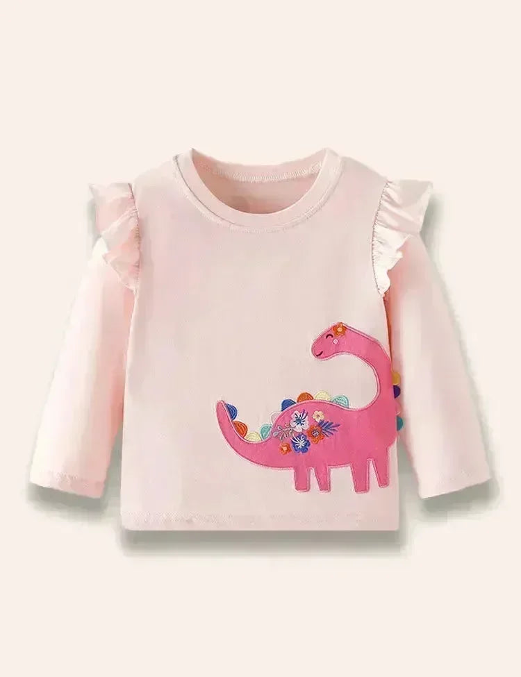 Dinosaur Appliqué Long Sleeve Ruffled T-Shirt