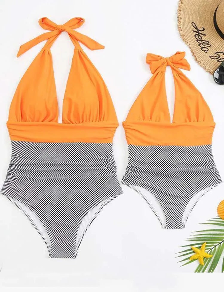 Family Matching One Piece Swimsuit Backless Swimsuit