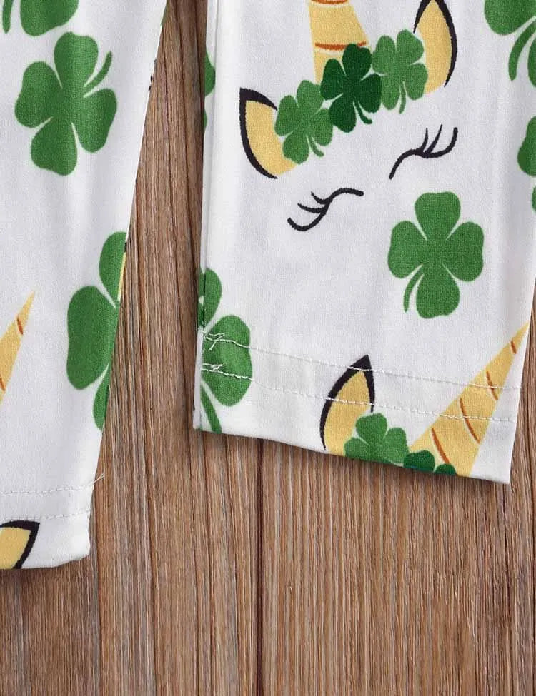 St. Patrick's Day Cartoon Eenhoorn jurk met lange mouwen en klaverlegging