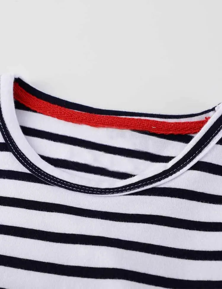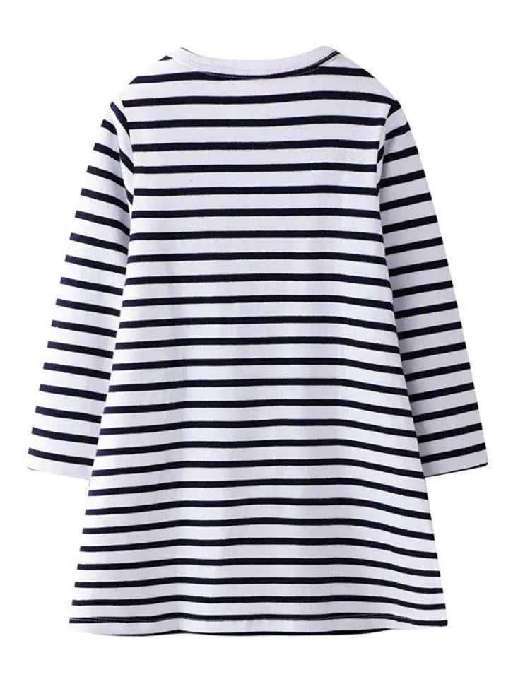 Gestreepte jurk met lange mouwen met lieveheersbeestjeapplicatie