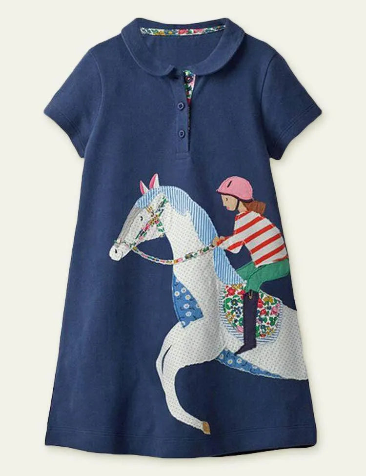 Equestrian Appliqué Short Sleeve Dress